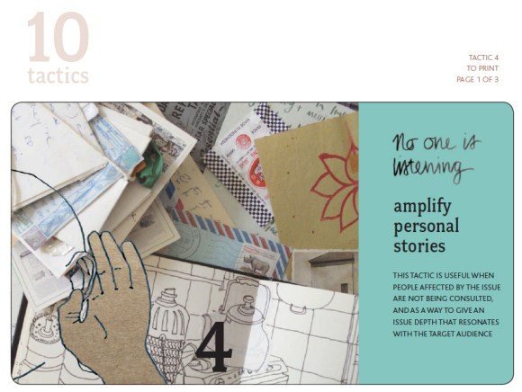 This tactic is useful when people affected by the issue are not being consulted, and as a way to give an issue depth that resonates with the target audience