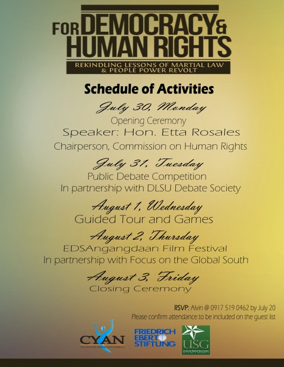 In this line, we would like to invite your organization to join us as we start to work for the greater promotion of deepened democracy, equality and social justice through this event. The exhibit will be staged at De La Salle University-Manila.