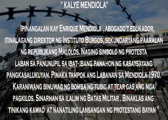 On the commemoration of the 40th anniversary of Martial Law on September 21, 2012, Remember ML@40 and T’bak will join the National Historical Commission (NHC) in the installation of a historical marker at the corner of Mendiola. This is to signify the historical importance of Mendiola Street as a venue for major protests against Martial Law.