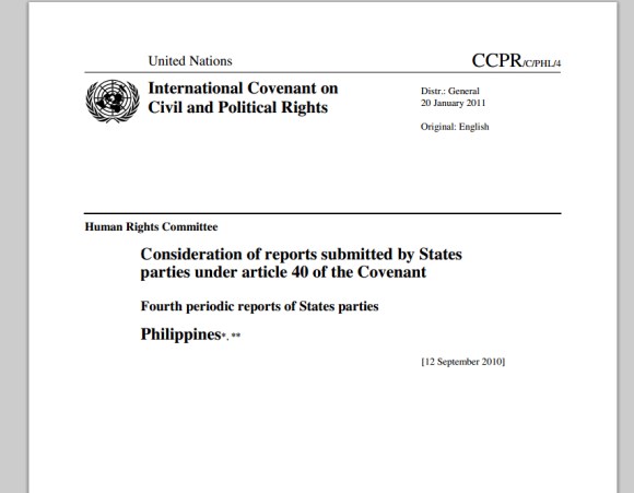 Instrument of Ratification. The Philippines submitted its Initial Report to the Committee on 22 March 1988 (CCPR/C/50/Add.1/Rev.1), which was considered by the Committee on 31 March and 03 April 1989.The combined 2nd and 3rd report was submitted to the Committee on 26 August 2002.