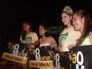 2012 Miss Earth Philippines runner-up Princess Manzon, ABS-CBN Foundation Managing Director Dr. Gina Lopez, 2012 Miss Earth Air Stephanie Stefanowitz and Romblon Office of the Governor Chief of Staff Ms. Trina Firmalo – all for TAO MUNA, HINDI MINA campaign. Photo ATM.
