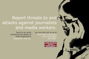 Report cases of attacks, threats, and killings of journalists and media workers -CMFR