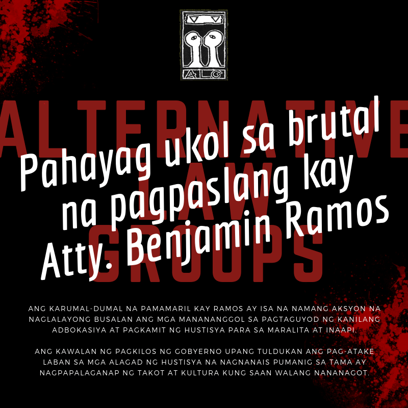 Pahayag ng Alternative Law Groups ukol sa brutal na pagpaslang kay Atty. Benjamin Ramos