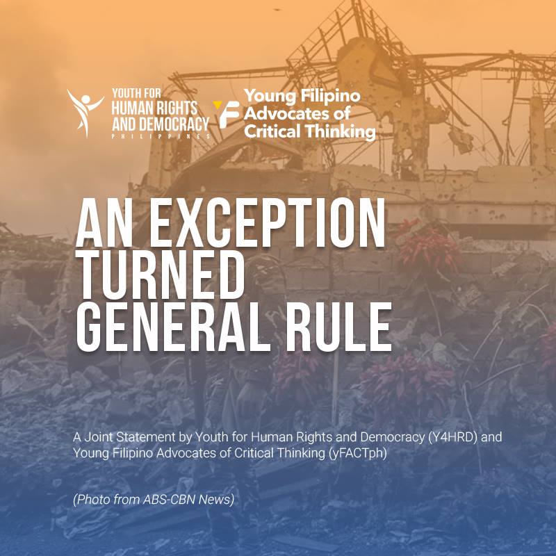 AN EXCEPTION TURNED GENERAL RULE: A Joint Statement by Youth for Human Rights and Democracy (Y4HRD) and Young Filipino Advocates of Critical Thinking (yFACTph)