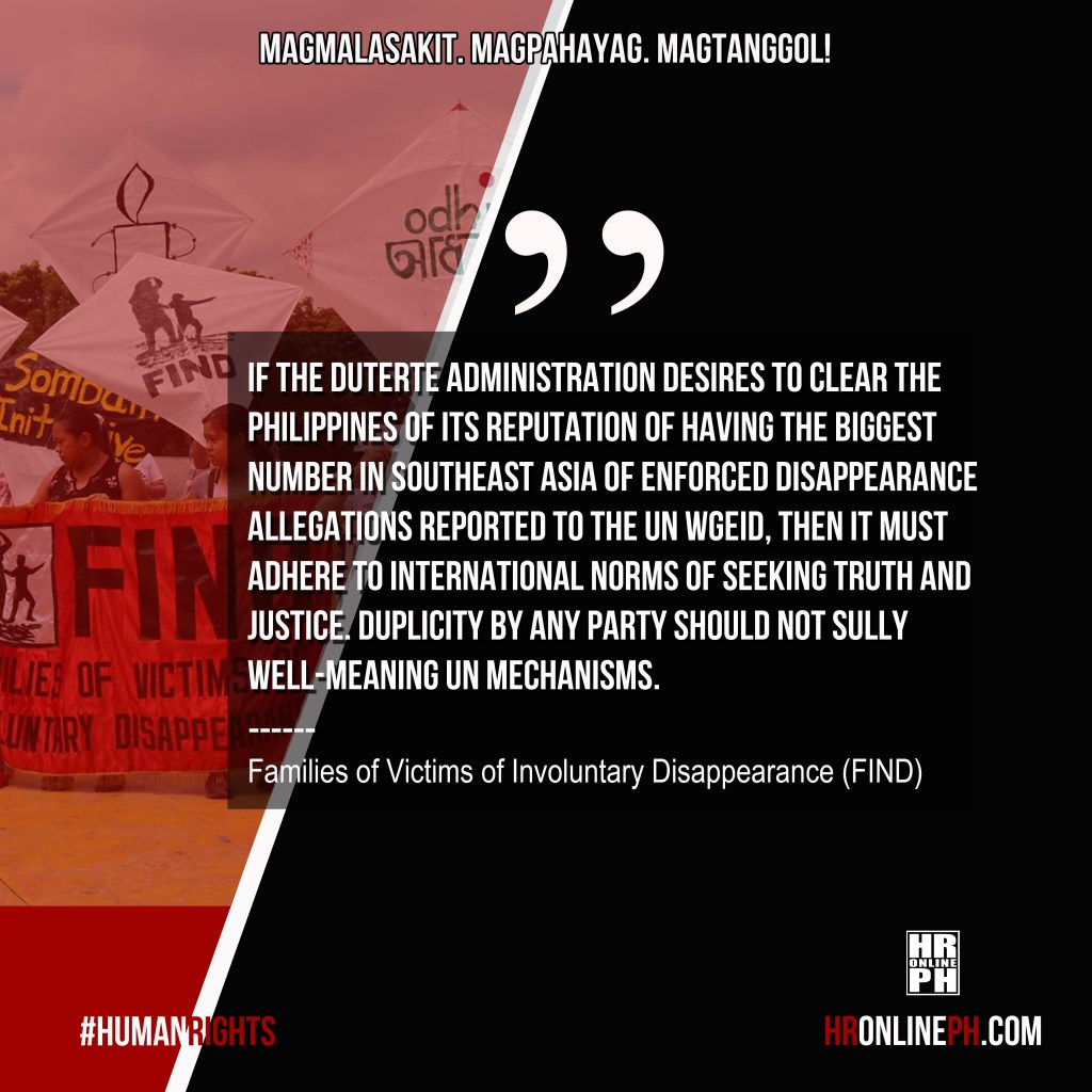 Families of disappeared decry Philippine government’s proposed delisting of 625 enforced disappearance cases from UN WGEID records – FIND