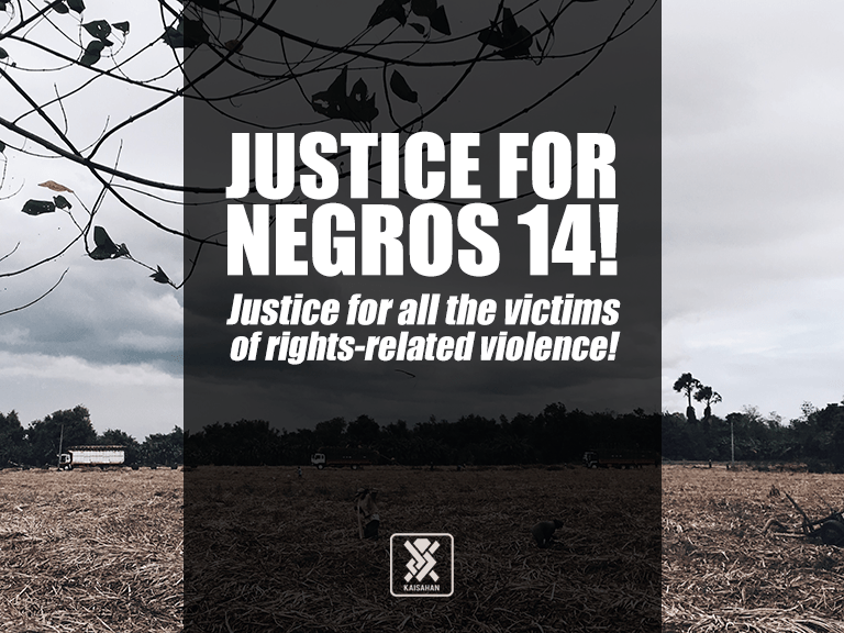 KAISAHAN, a legal rights NGO advocating on the land rights of landless farmers in Negros Occidental, condemns the brutal killing of the fourteen (14) farmers of Negros Oriental during a series of joint operations of the Armed Forces of the Philippines (AFP) and the Philippine National Police (PNP) last weekend. Police reports suspected the victims as members of the New People’s Army (NPA) and were shot because they allegedly resisted arrest.