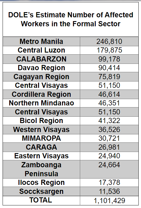 Arago also noted that the data of the Labor Department is conservative. According to the think-tank Ibon Foundation, the number of workers who may be affected by the Enhanced Community Quarantine, both from the formal and informal sectors is at 11 million. This is based on the 2018 labor survey force.