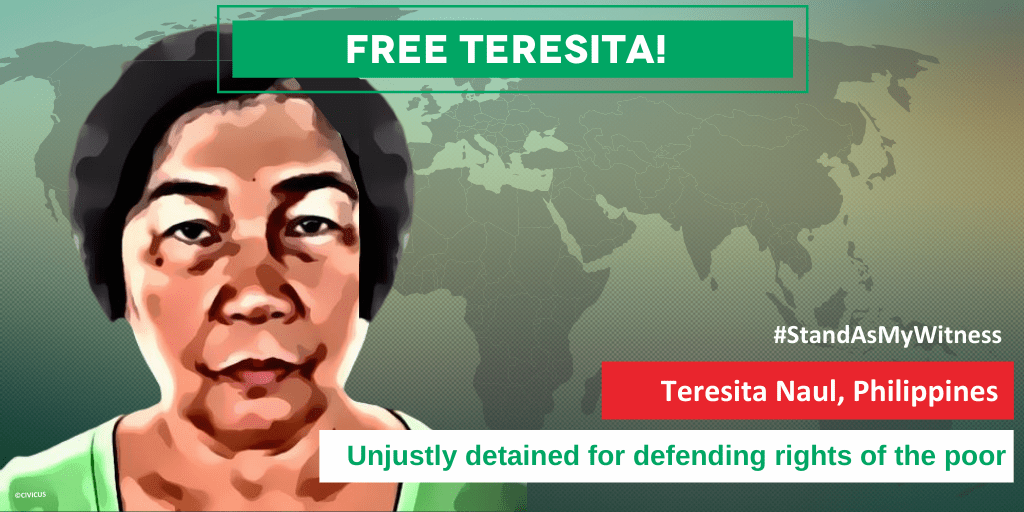 Human rights organisations call for release of activist Teresita Naul ahead of court case and major global campaign #StandAsMyWitness