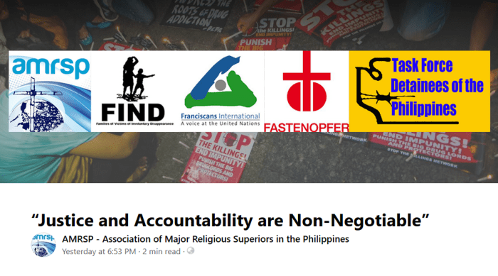 Association of Major Religious Superiors in the Philippines (AMRSP) Families of Victims of Involuntary Disappearance (FIND) Franciscans International (FI), Swiss Catholic Lenten Fund (SCLF) Task Force Detainees of the Philippines (TFDP)