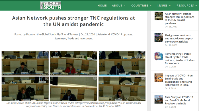 #HumanRights #Trade Asian Network pushes stronger TNC regulations at the UN amidst pandemic