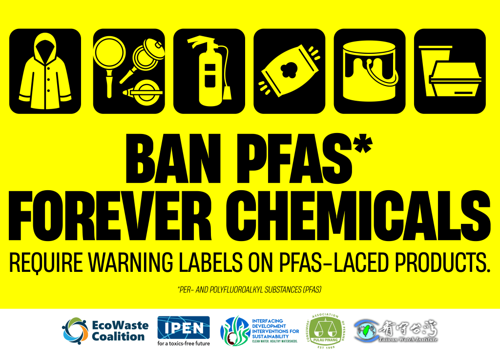 At a webinar co-organized by the EcoWaste Coalition with the Consumers’ Association of Penang (CAP), Interfacing Development Interventions for Sustainability (IDIS), Taiwan Watch Institute (TWI) and the International Pollutants Elimination Network (IPEN), the groups pressed for a ban on PFAS as a class while conveying support for PFAS-free clothing, food packaging, cookware and other applications.