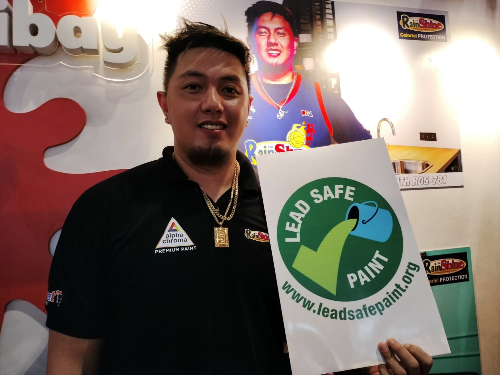 SPORTSMEN FOR A LEAD-SAFE ENVIRONMENT: Members of the Rain or Shine Elastopainters basketball team pitch for certified paints without lead additives to protect children, women and workers from being exposed to lead-containing paint, dust and soil, which can cause adverse health effects, most especially to kids and babies in the womb. Consumers are advised to seek certified lead safe paints for a colorful, healthier and safer home, school, play and workplace environment. (Photos by Manny Calonzo, EcoWaste Coalition)