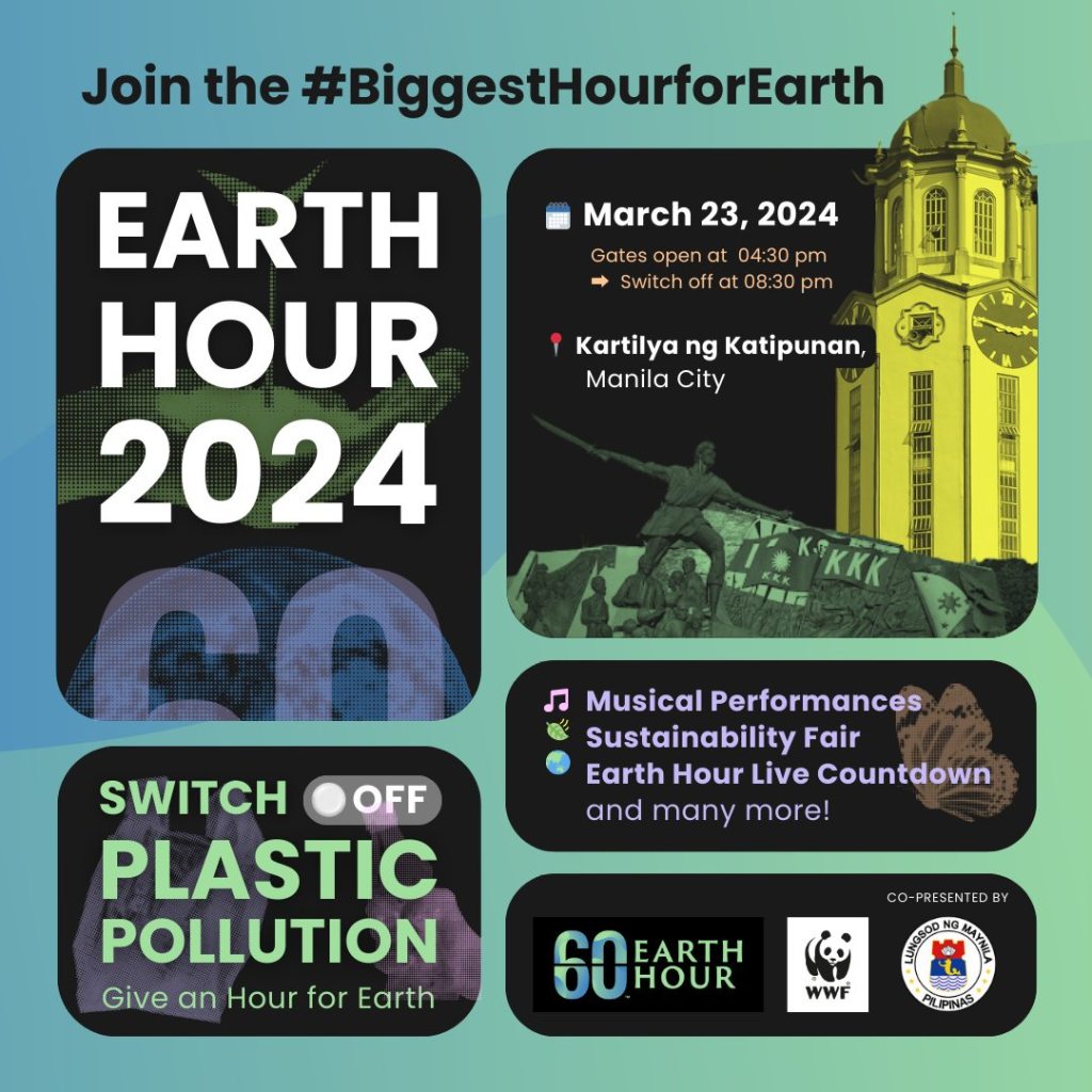 Be part of the #BiggestHourForEarth 🌎 Check out Oxfam Pilipinas’ Sustainability Fair booth at 4:30PM WWF-Philippines’ switch off program at 8:30PM on March 23, 2024 at Kartilya ng Katipunan, Manila. Visit wwf.org.ph to learn more