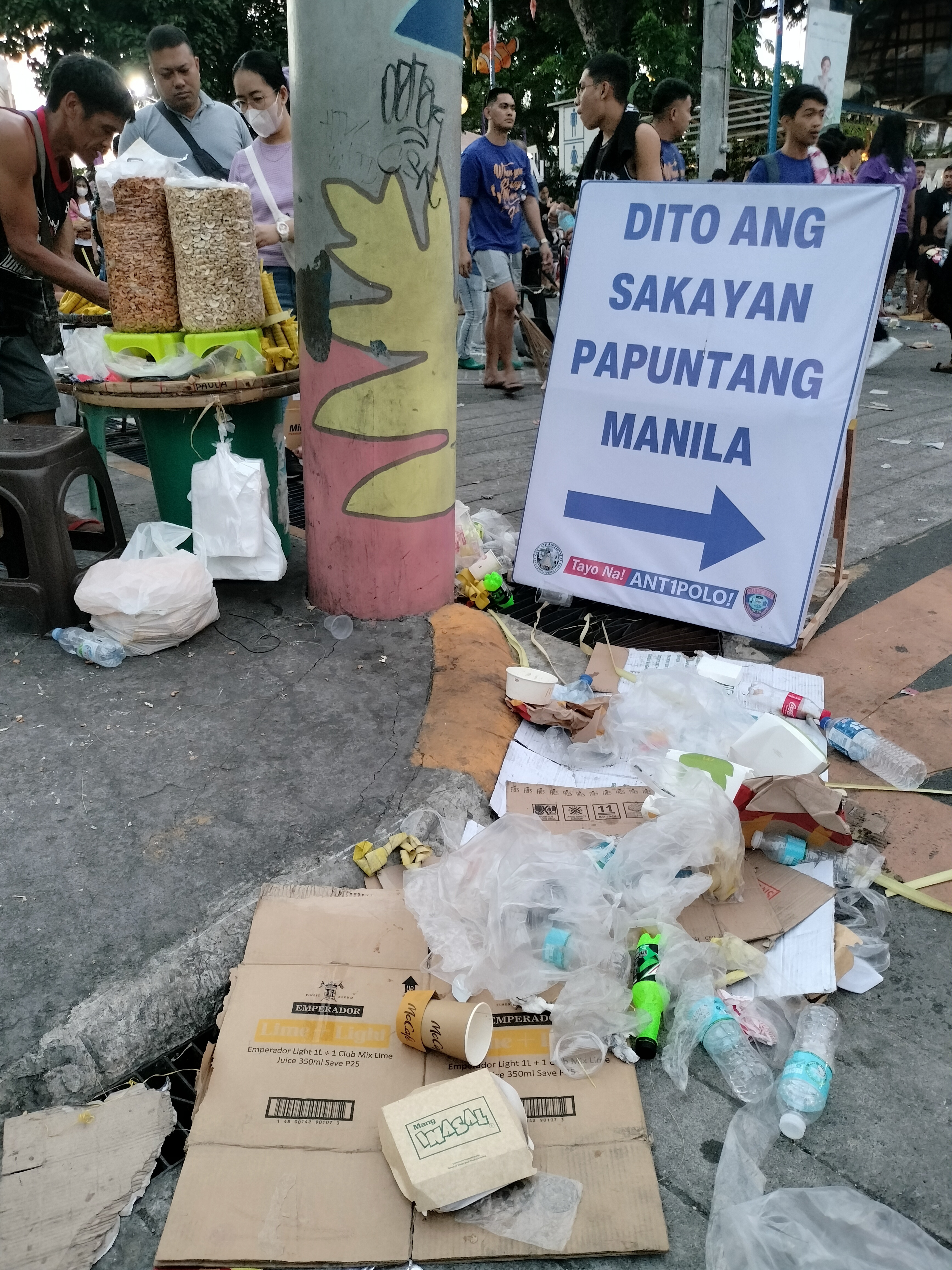 Despite the constant reminder not to dispose of trash anywhere, some visitors left empty plastic water bottles inside the Antipolo Cathedral. Some visitors who spent the night at the church patio and on the sidewalks after a grueling walk simply abandoned their improvised sleeping materials such as corrugated boxes and used papers for others to pick up.