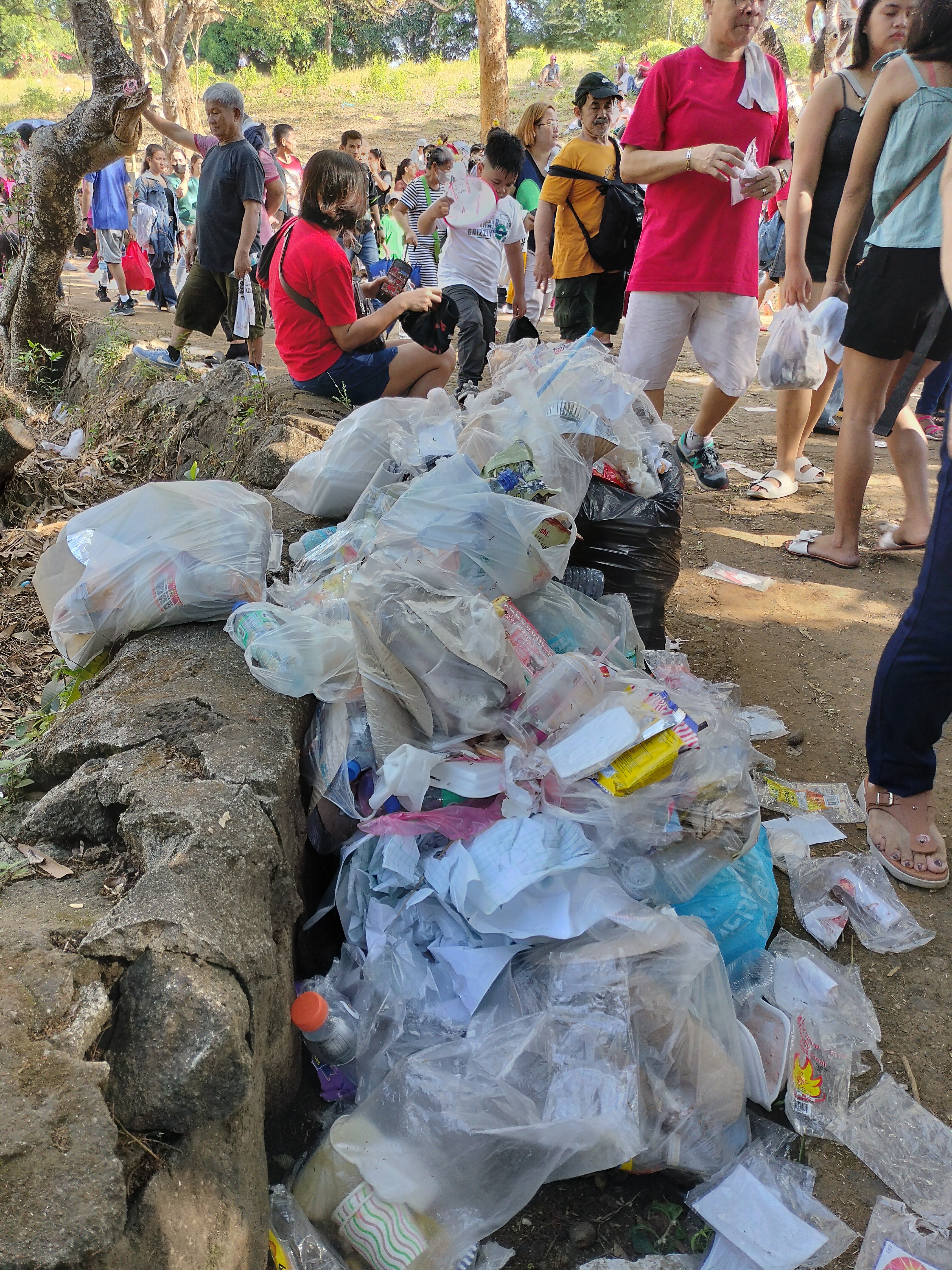 As in previous years, rampant littering was observed at the Grotto of the Our Lady of Lourdes in San Jose del Monte City, Bulacan from the sprawling lawns at the entrance to the hills where the life-sized Stations of the Cross are located. At the picnic area and elsewhere, big blue bins were found brimming with trash, mostly single-use plastics, which the personnel had to frequently empty.