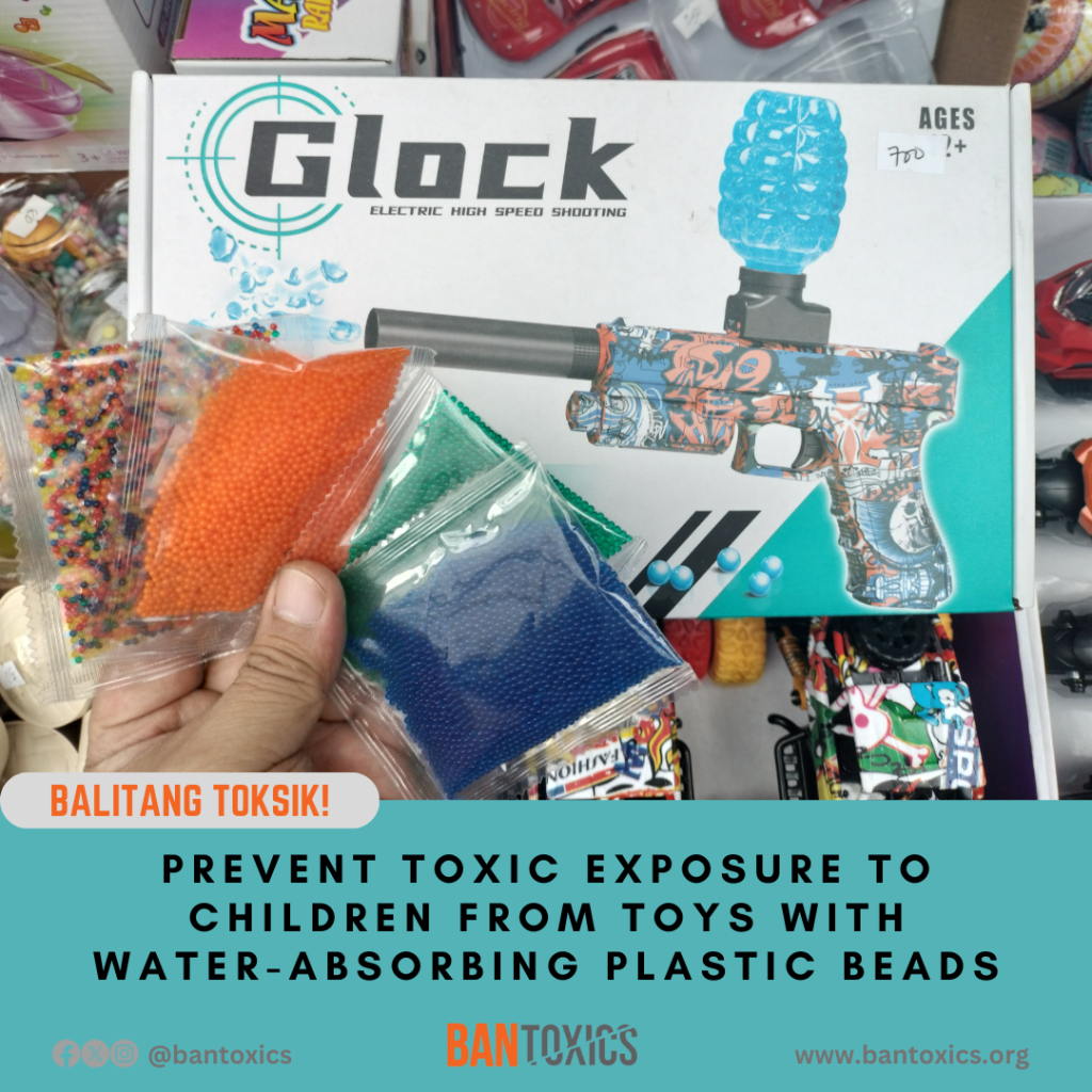 “We express concern about the growing availability of gel blaster submachine gun toys using water beads or gel ammunition that expand to sizes ranging from 7 mm to 10 mm when soaked in water. We reiterate the dangers associated with plastic beads, particularly the risk of ingestion and choking, which can have severe consequences for infants and young children,” said Thony Dizon, Toxics Campaigner, BAN Toxics.