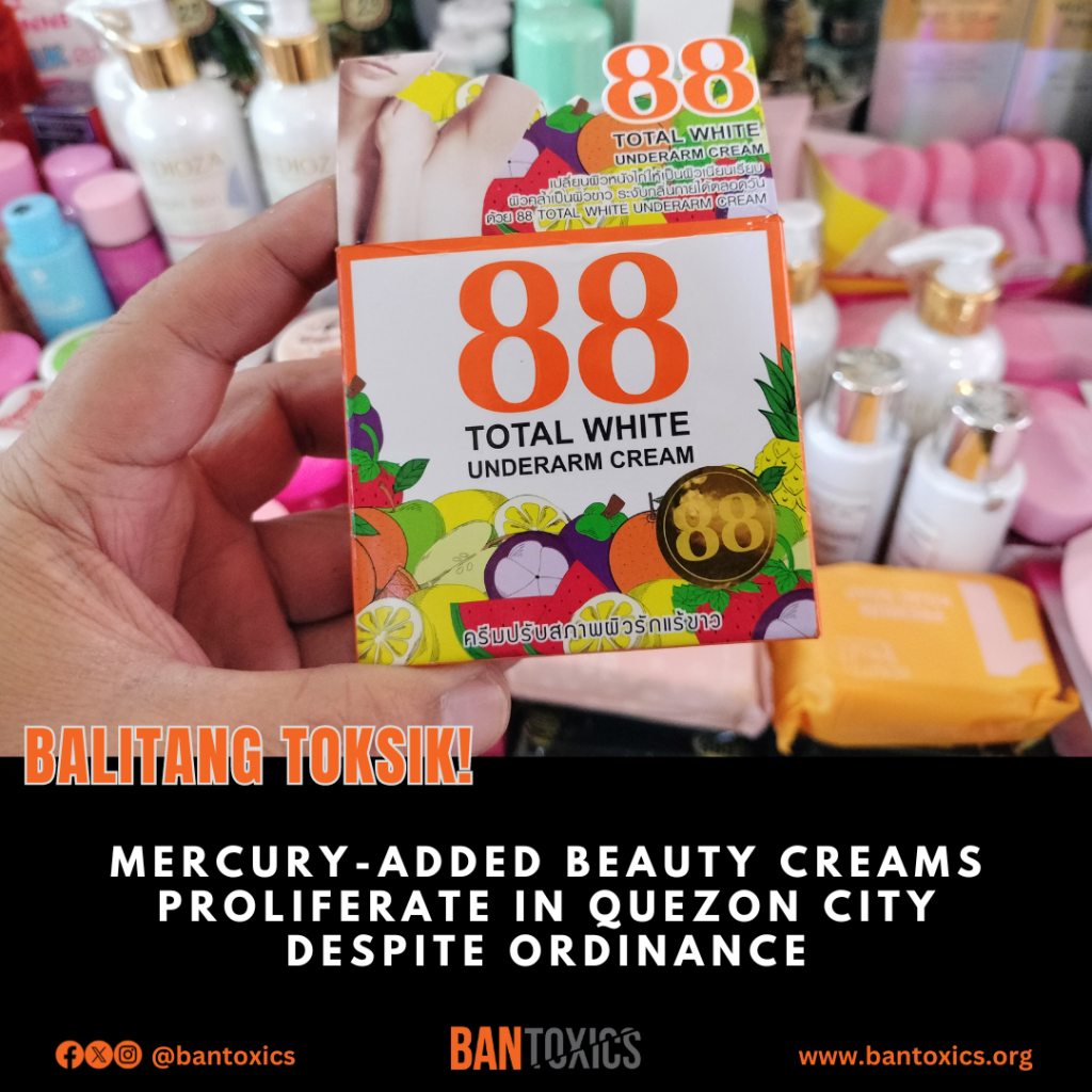 Toxic watchdog group BAN Toxics is urging the Quezon City government, particularly the Quezon City Health Department (QCHD), to take regulatory action against the unwarranted sale of mercury-added skin whitening creams to protect public health from mercury exposure.