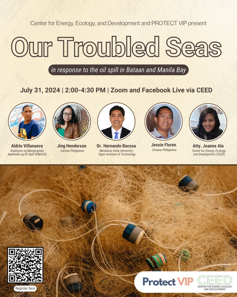 CEED and Protect the Verde Island Passage invite you to the webinar 𝗢𝘂𝗿 𝗧𝗿𝗼𝘂𝗯𝗹𝗲𝗱 𝗦𝗲𝗮𝘀: 𝗔 𝗥𝗲𝘀𝗽𝗼𝗻𝘀𝗲 𝘁𝗼 𝘁𝗵𝗲 𝗢𝗶𝗹 𝗦𝗽𝗶𝗹𝗹 𝗶𝗻 𝗕𝗮𝘁𝗮𝗮𝗻 𝗮𝗻𝗱 𝗠𝗮𝗻𝗶𝗹𝗮 𝗕𝗮𝘆.