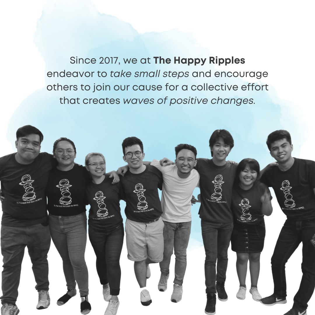 The Happy Ripples was based on our team’s initiative of reaching out to other people through our pooled efforts. Just like pebbles, when tossed into the water, we believe that we could touch the lives of other people and create a resonating effect.
