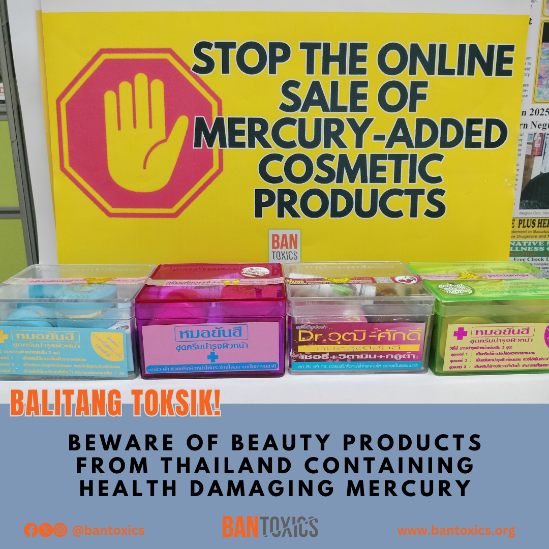 “Consumers should take extra care not to be deceived by false advertisements that claim to be safe, effective, and free of harmful ingredients while hiding the danger of toxic mercury in cosmetic products,” said BAN Toxics Campaigner Thony Dizon.