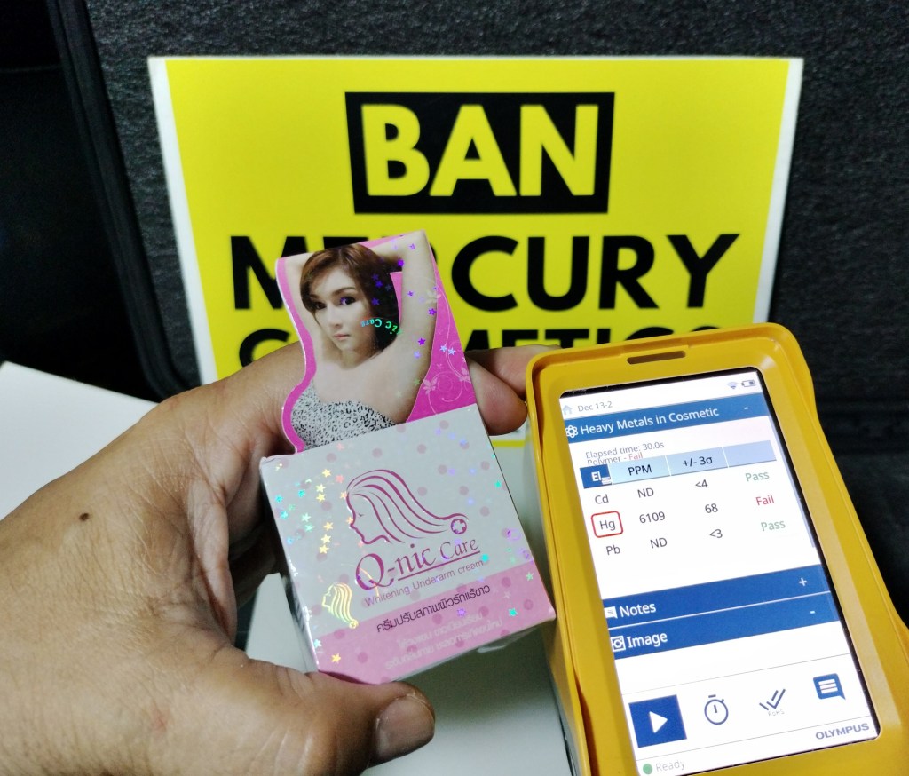 As per XRF analysis, Q-nic Care Whitening Underarm Cream contains 6,109 parts per million (ppm) of mercury, which far exceeds the legal limit.