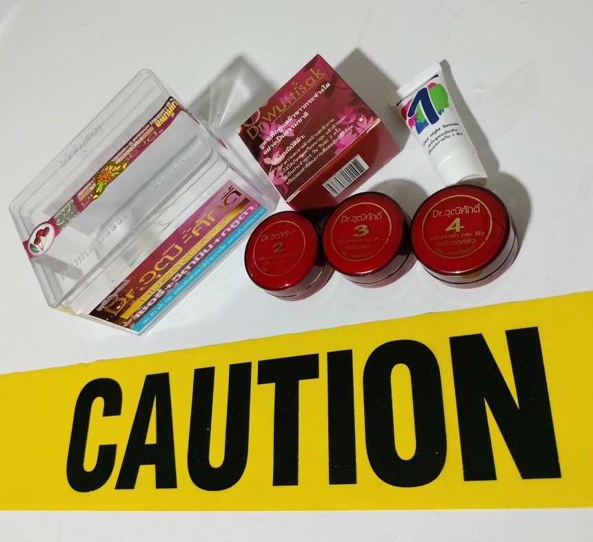 As part of its continuing advocacy to protect public health and the environment from hazardous chemicals, the group bought a red Dr. Wuttisak skincare set from an online dealer for P120.