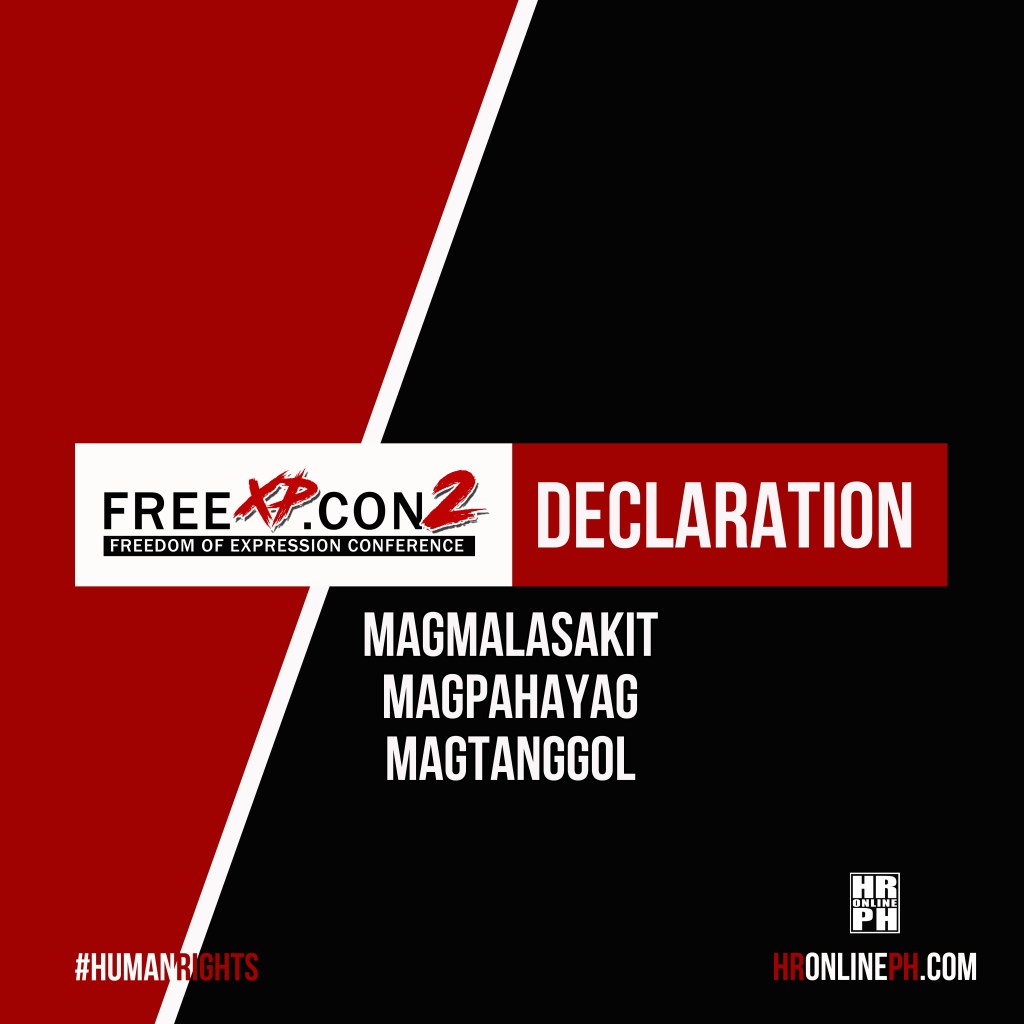 We, the members of the media, campus journalists, online bloggers, human rights defenders and members of civil society organizations gathered on 27 November 2018, for the Freedom of Expression Conference 2 or FreeXP.con2 organized by the Human Rights Online Philippines (HRonlinePH) and the Philippine Alliance of Human Rights Advocates (PAHRA) to discuss the state of human rights in the Philippines especially the right to freedom of opinion and expression hereby agreed that: