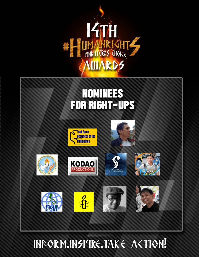 🏆 Winners will be selected based on a combination of Facebook reactions and poll votes. They’ll be honored on December 1 at the Human Rights Pinduteros Choice Awards Night (venue to be announced).